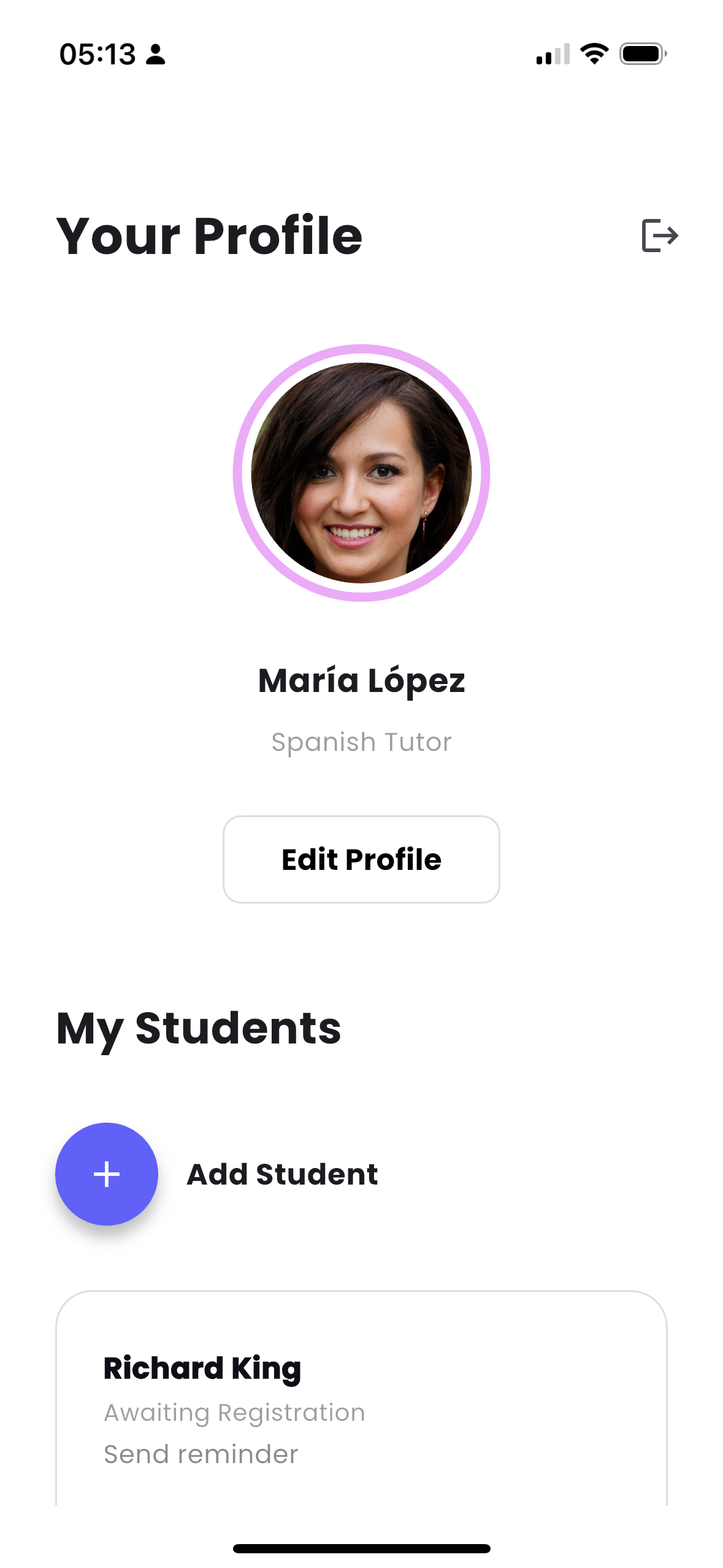 - Once you have completed your profile you can immediately invite your students by just adding their name and email address. They will receive a personal invite to the App.