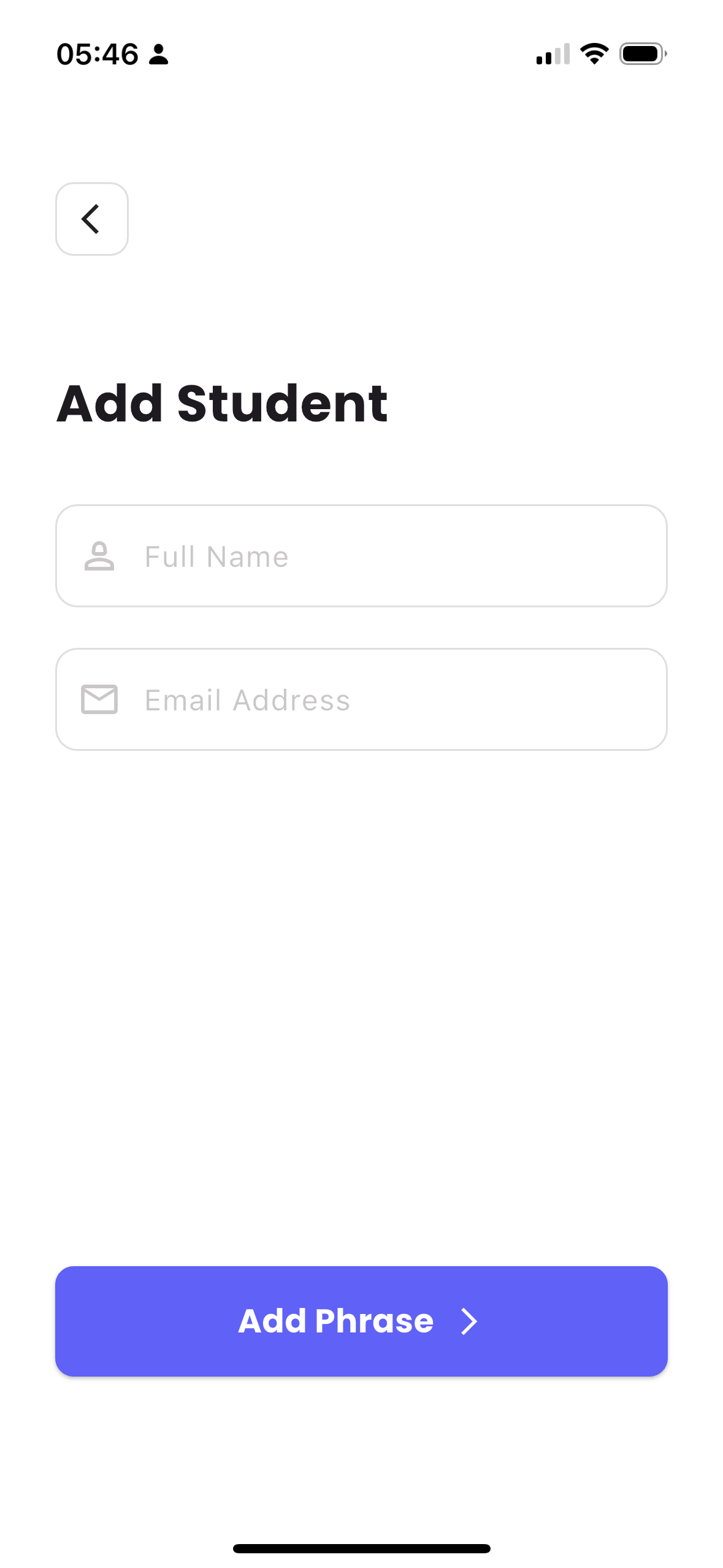 - Once you have added a student you can start adding phrases for them and translations. This is covered in more detail on